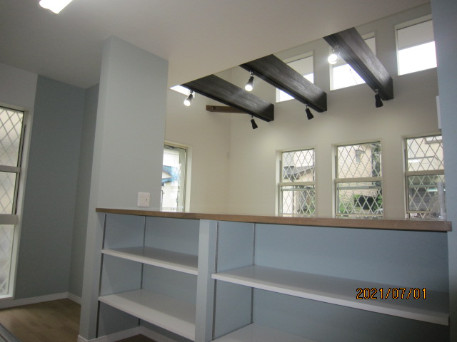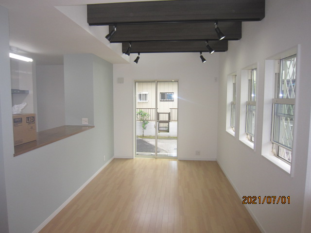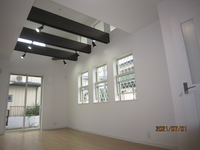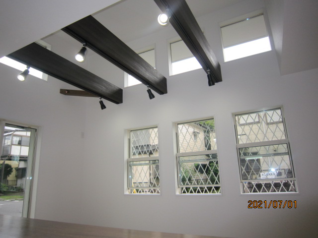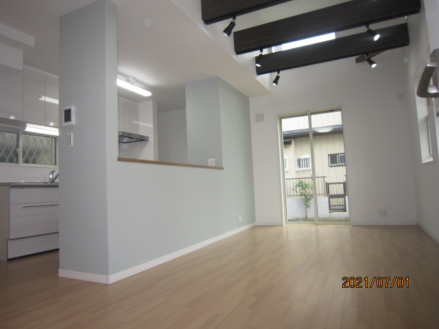 1階リビング梁だし吹抜け仕様・対面キッチン・角地にて日照良好